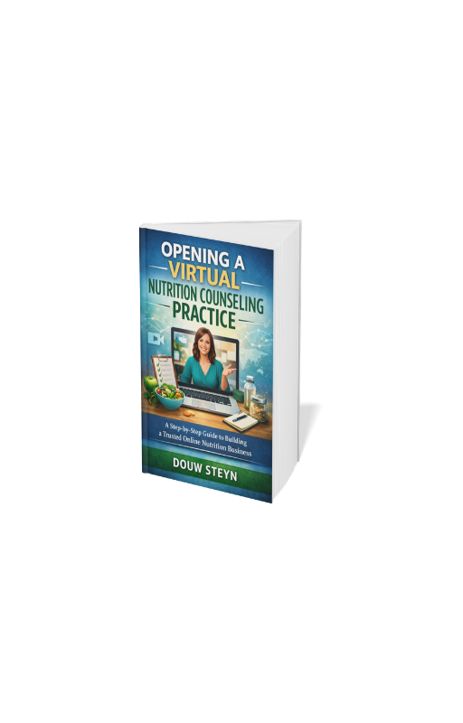 Opening a Virtual Nutrition Counselling Practice is a step-by-step business guide for nutrition professionals who want to build a credible and sustainable online practice—without falling into the common traps of underpricing, overworking, or operating outside their scope.